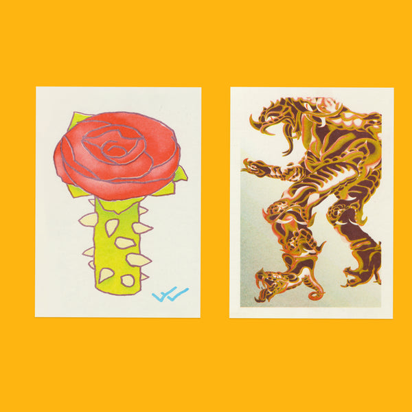 A5 risograph postcard set, printed of Context Natural 300gsm card stock